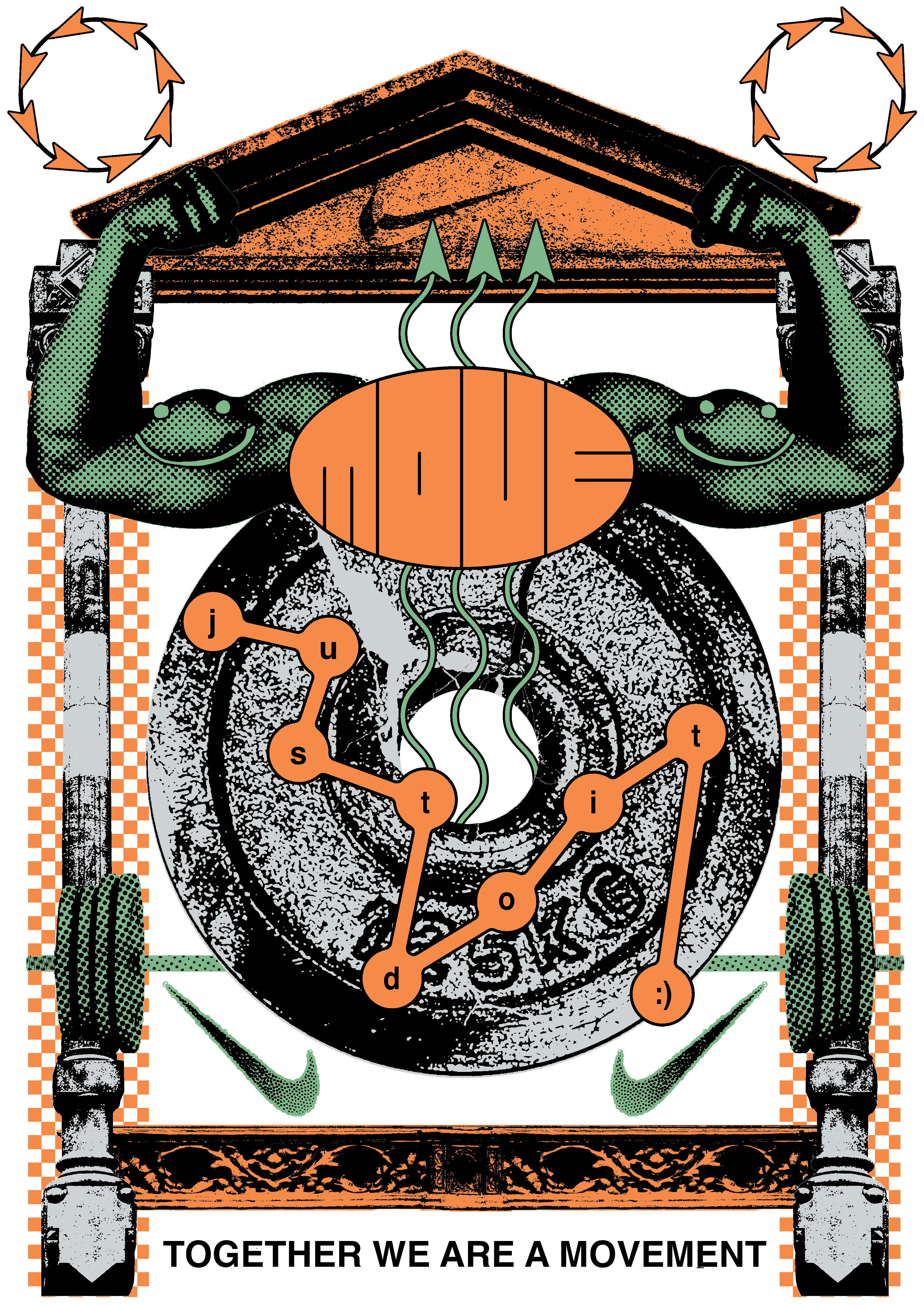 I was able to create some fun graphics loosely inspired by visual guides of muscle fiber makeup as well as thermoregulation of the body in motion and then inject them with color and energy through expressive collage work :)